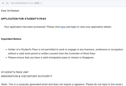 文件上传提交之后,大概2至3天就能审核通过,之后你就可以付款啦,一共90新币。审核通过之后,同样会收到一封邮件,表示系统中的步骤二也已完成,恭喜。