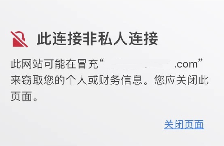 此连接非私人连接此网站可能在冒充来窃取您的个人或财务信息。您应该关闭页面。