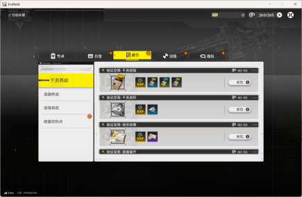 在游戏的探索过程中,最多可编组4名干员加入小队。在战斗过程中,当主控干员进行战斗时,队伍中其他干员进行“自动战斗”。背包中能通过简制系统制作“战术物品”,在战斗前为小队中的干员进行装配。干员会“自动使用”已装配的“战术物品”,辅助场上战斗。
