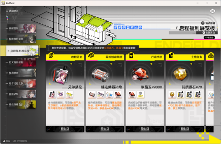 游戏币 | 游戏中主要有衍质源石、嵌晶玉、折金票三种游戏币,衍质源石、嵌晶玉主要用于购买各类功能型商品、抽取角色,可以通过充值等获得,折金票主要用于特定界面。 |