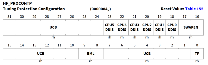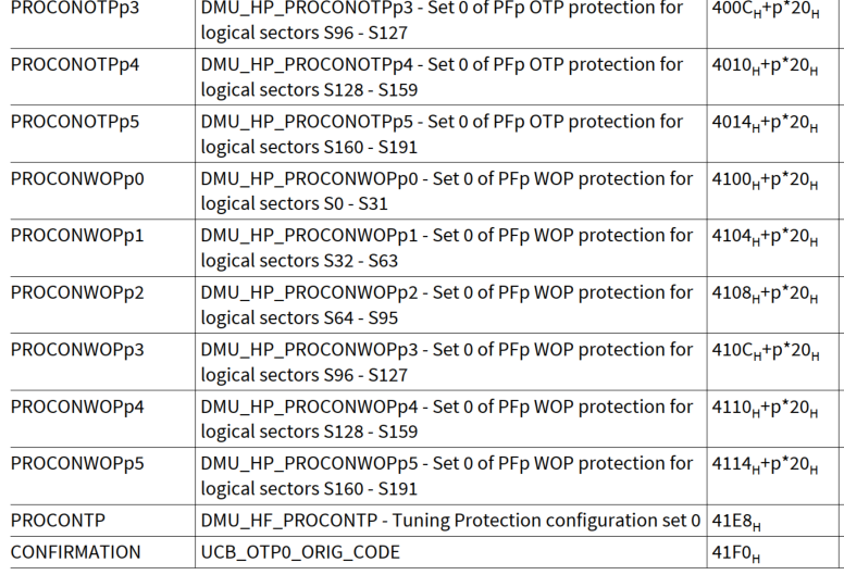 PROCONTP | 对应DMU_HF_PROCONTP,Tuning Protection | 0x AF40 41E8 - 0x AF40 41EB |