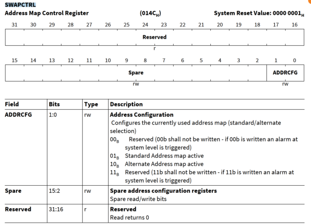 由于SWAP是TC3xx支持两种不同的物理地址映射到同一个逻辑地址,因此当SWAP功能启用后,我们就要看它是如何实现这个地址映射的。