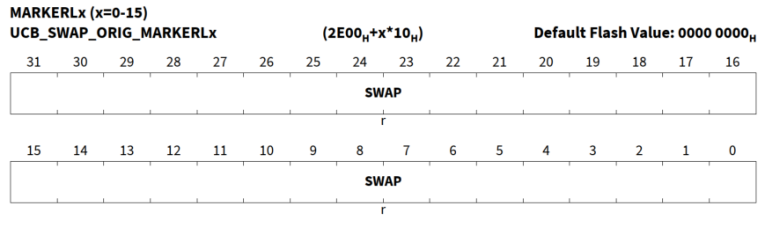 当swap entry使用超过16个后,此时就需要擦除所有的UCB_SWAP信息(DFlash 0 ->UCB area),然后又从0开始进行。当前使用的SWAP ENTRY可以通过寄存器SCU_STMEM1.SWAP_DW_INDEX进行读取,那么对这块的软件设计就相对简单。