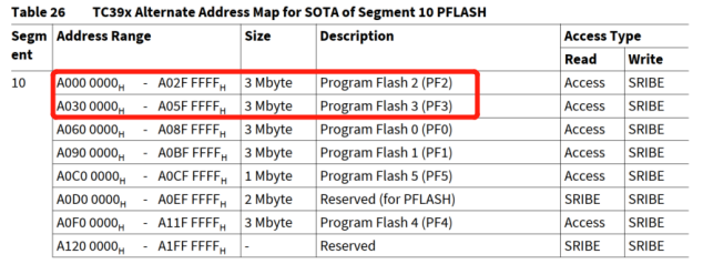 从TC39x的备选地址映射来看,PF0/1和PF2/3可以SWAP替换,PF4和PF5+reserved可以swap替换?