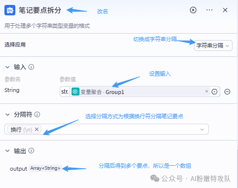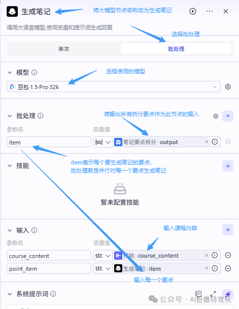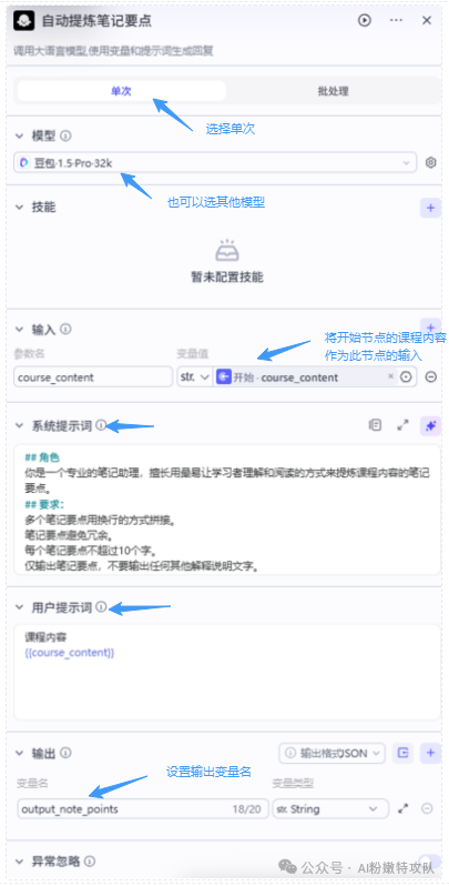 {{course_content}}由于批量生成多个要点笔记,【笔记生成】节点的输出是一个字符串数组,数组中每个元素对应一个要点笔记。