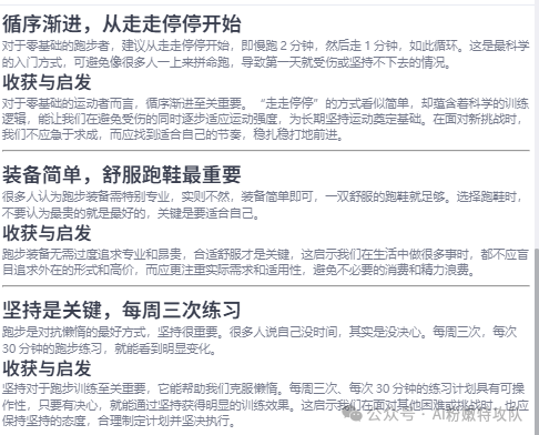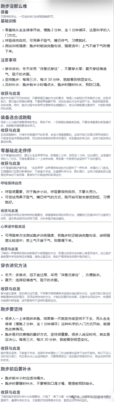 谁有问题吗?(稍微停顿)没有的话,我们下节课见!记住,跑步不是折磨,而是享受!(掌声)三个笔记要点: