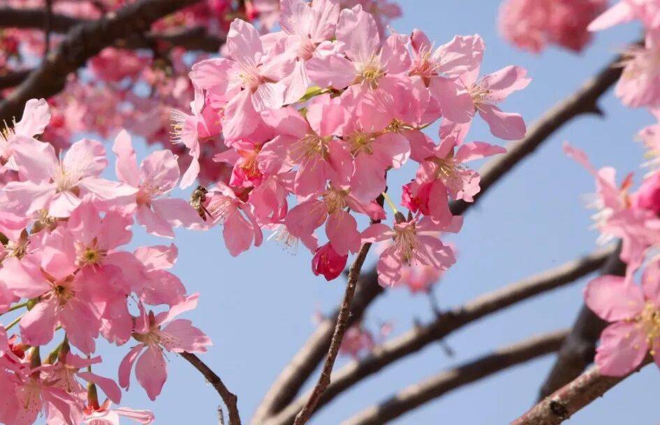 •花簇成串更热闹:樱花多为3-5朵簇生,花梗细长柔软,风一吹就轻轻摇晃,自带“灵动氛围感”;