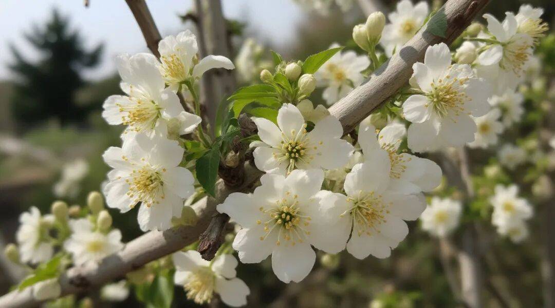 •花叶同放带嫩色:开花时会同步长出嫩绿的新芽,枝桠上还带着淡淡的红色,哪怕不开花,光看枝条也能认出它。