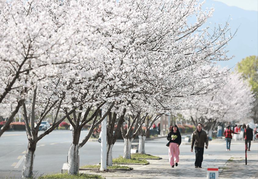 赏花时注意安全,不攀爬花树、不踩踏草坪,文明踏青才是最美的风景。