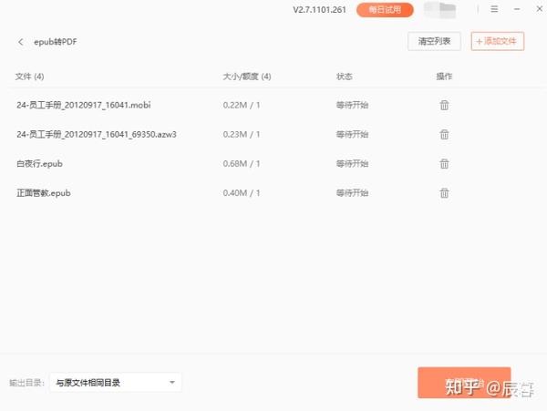 操作十分简单,找到【电子书转PDF】功能,上传文件,点击【开始转换】就能批量将epub格式转换为PDF格式啦。