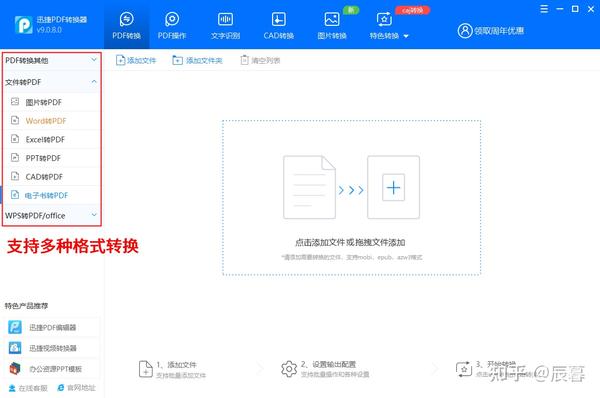 功能多样的PDF转换器,支持PDF与Excel、Word等多种格式之间的相互转换,就连epub、azw3等电子书都可以转换。