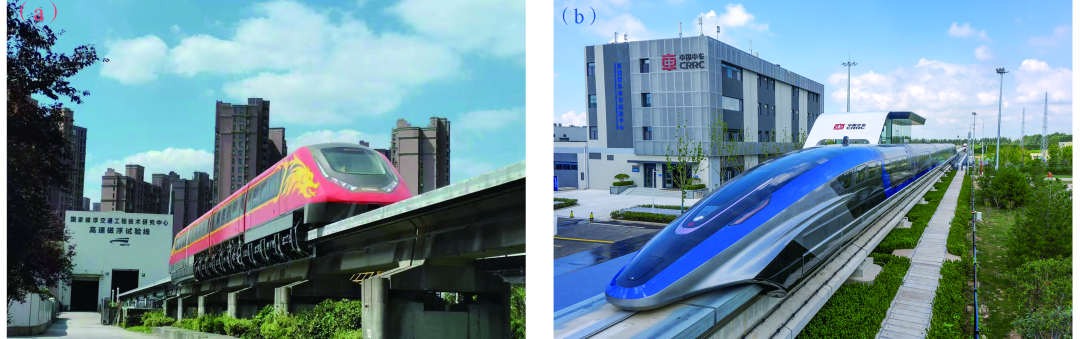 图2 中国研制的常导中速(a)和高速(b)磁浮列车