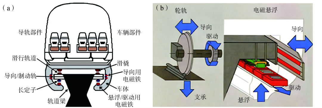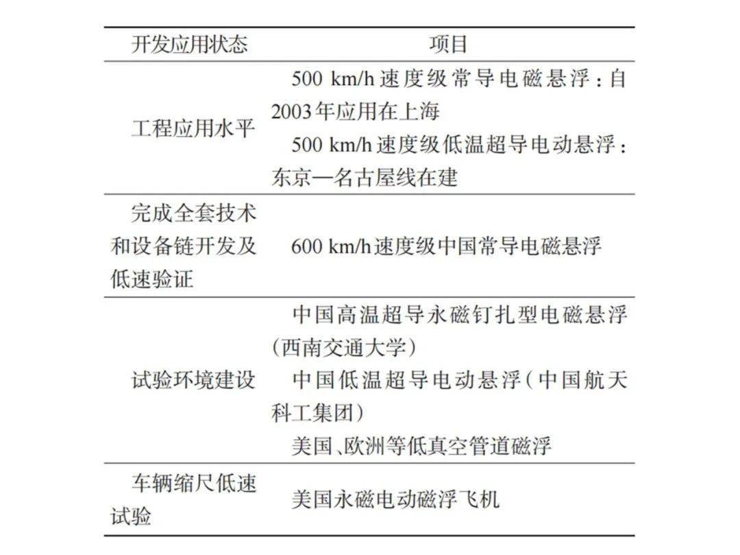 (2)目前高速磁浮交通系统只有常导电磁悬浮和低温超导电动悬浮两种制式较为成熟,具备工程实施可行性。其他制式尚处于理论探讨阶段,未形成系统的技术架构。