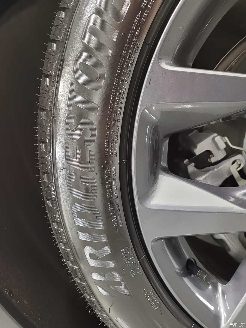 普利斯通+20寸大脚。全新的轮胎还带着”绒毛“,典型的”黄毛丫头“。