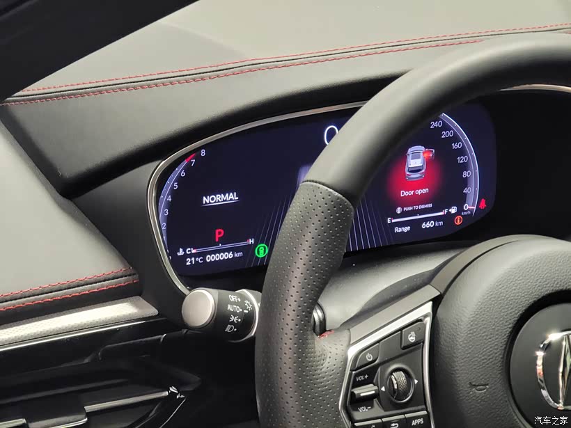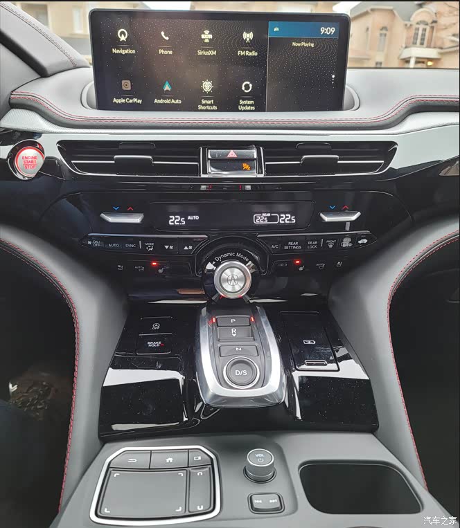 开始内饰部分了。内饰明显比RDX Aspec要显得高级一些,解手可及的所有地方都是软皮质感,到处都是这种红线缝合。还是显示比较高档的。