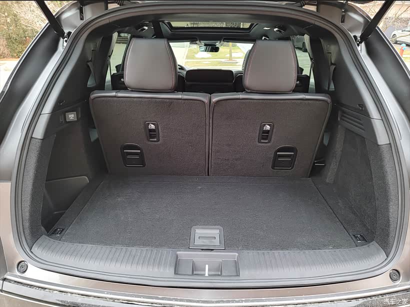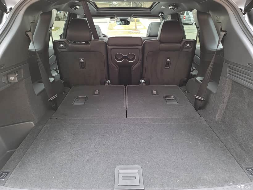 第三排座椅放平的后尾箱,比不上Minivan,但也足够大了,在大中型SUV中应该是最大的。