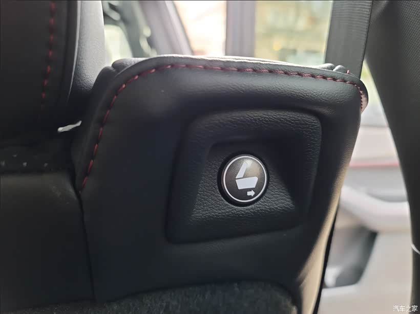 要进入第三排座椅,只需要按一下这个按钮,第二排座椅就会向前滑开。非常方便,再也不用推来推去了。