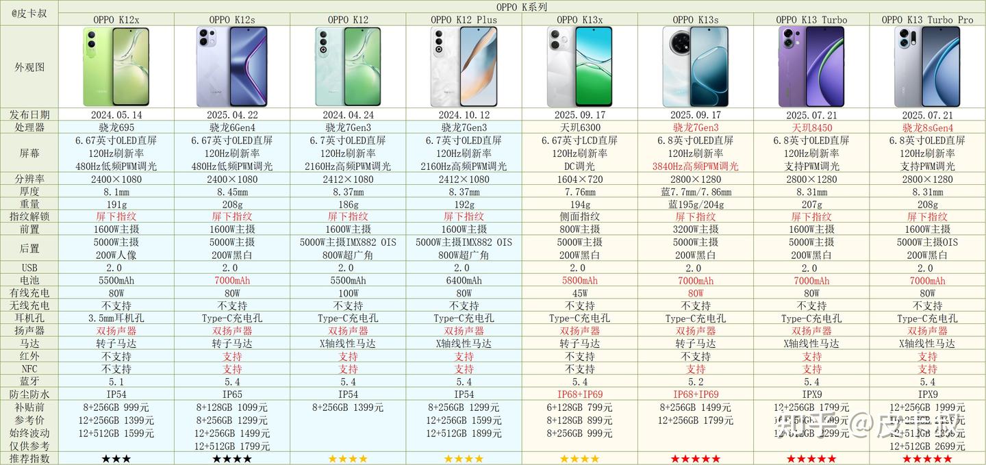 近期更新:已更新12月3日发布的一加Ace 6T。已更新11月17日发布的OPPO Reno15系列。已更新10月27日发布的一加15和一加ACE6。已更新10月16日发布的OPPO Find X9系列。