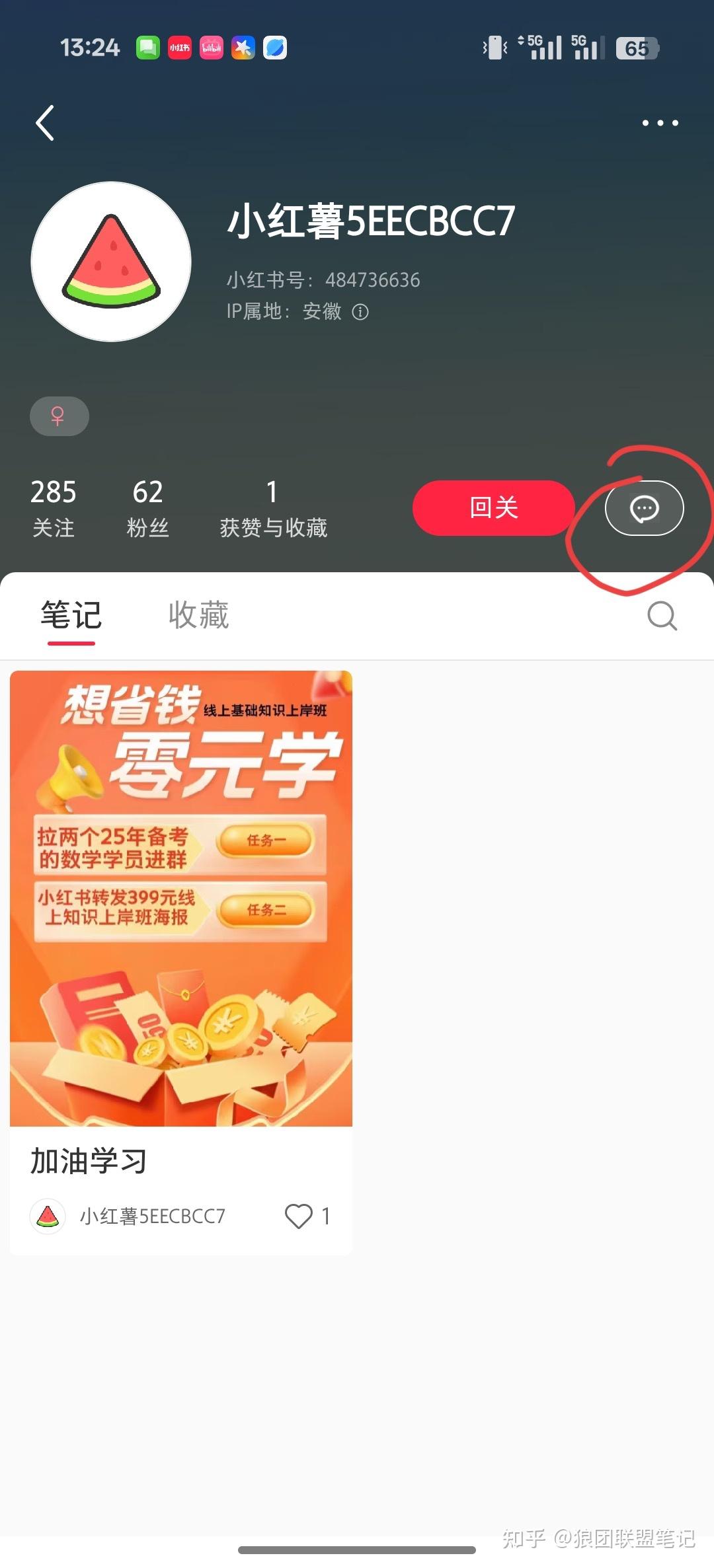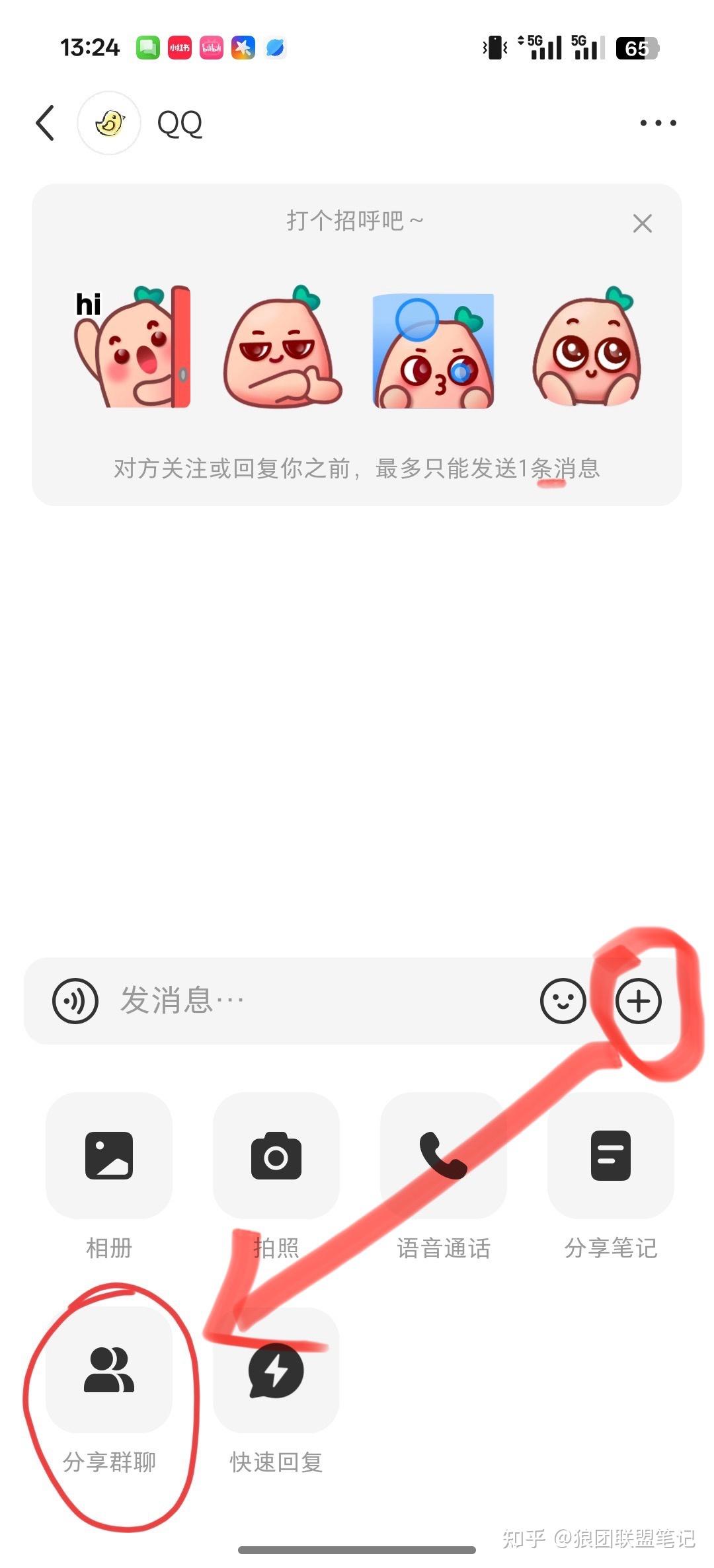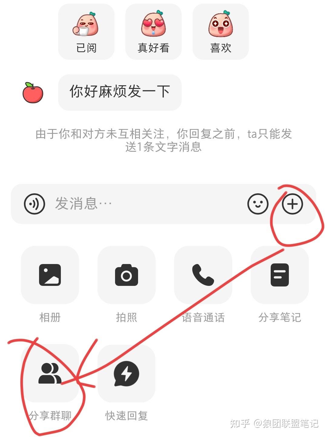 互关的粉丝超过 40 人,就进入到账号主页。点击消息图标,点击「➕」号,选择「分享群聊」,选择小红书群就号,最后等待入群即可。具体图片截图可以看 6.5.2。