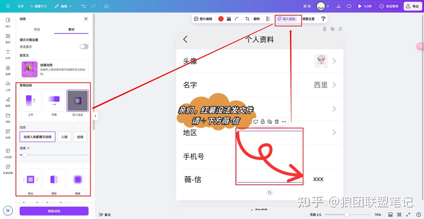 第五步,输入「亲们,红薯没法发文件请➕下方薇-信」,设置倾斜,加粗和轮廓