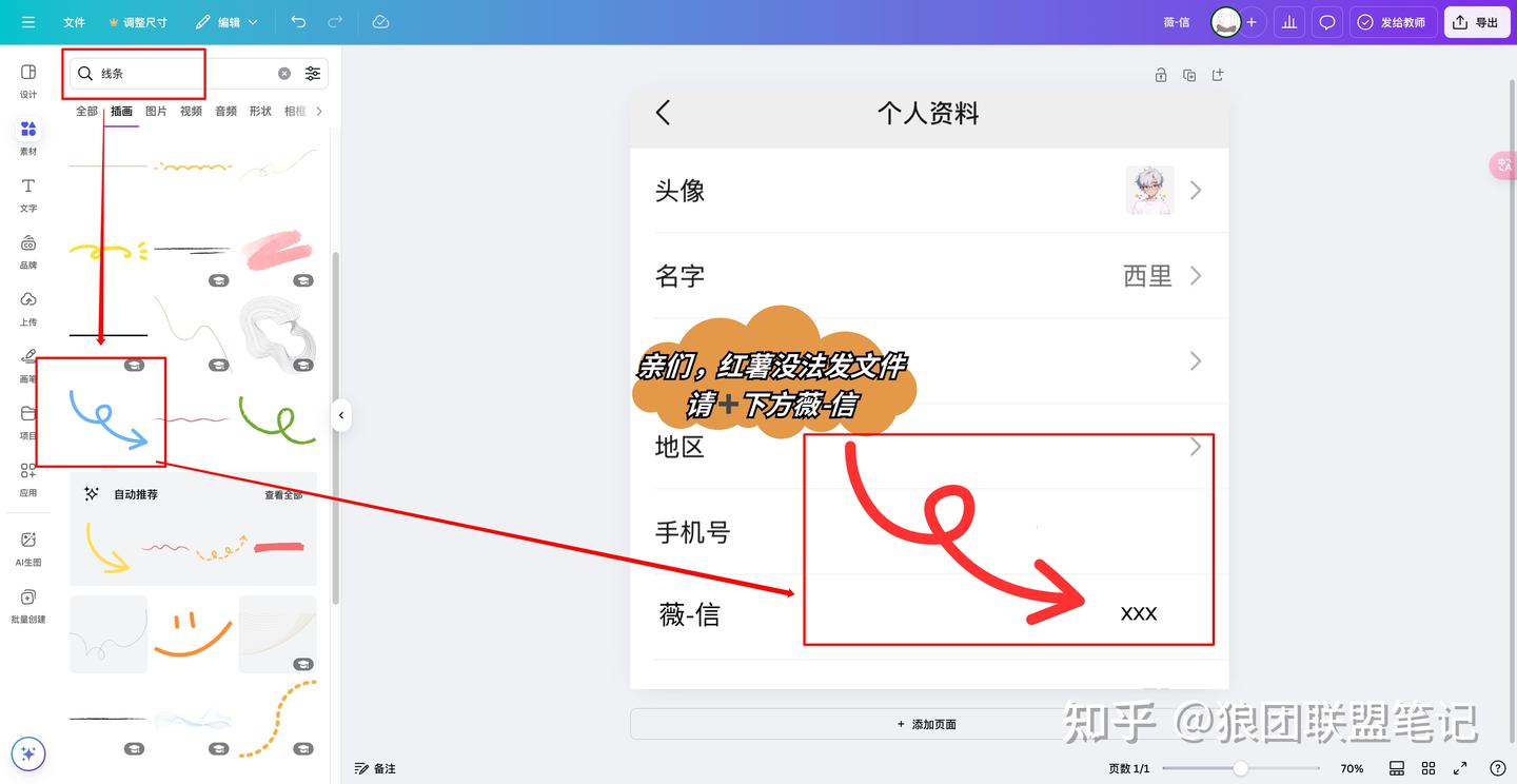 第三步,用白色截图盖住「微信号」,然后改为“薇-信”