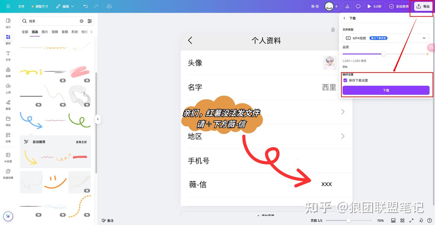 第六步,添加线条指引到微信
