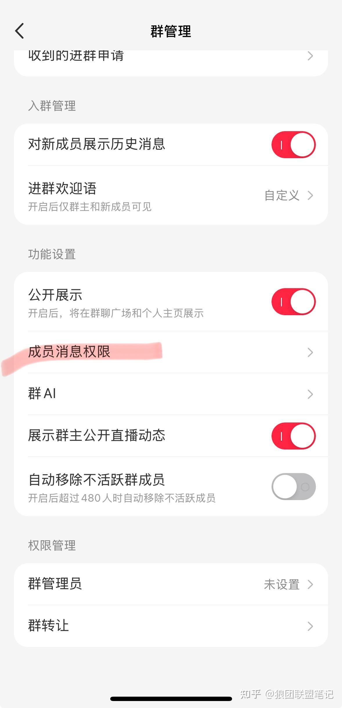 群成员权限,给全部关掉