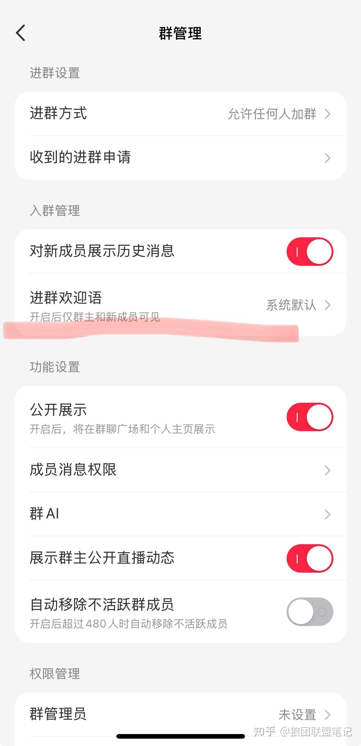 设置群管理(入群方式、欢迎语、权限)