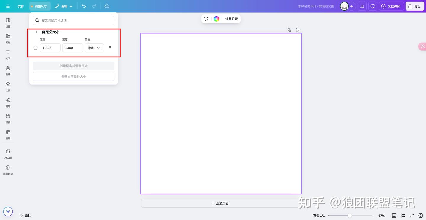 第一步,在可画新建一个正方形的「设计」。