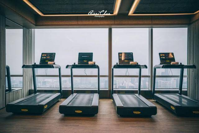 健身中心配备了全套意大利Technogym泰诺健的产品,同时拥有窗外的高空景观。