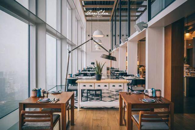 餐厅为客人提供两种独特的用餐体验,你可以选择在充满活力的主厨台用餐,近距离欣赏烹饪的艺术;或者在宁静舒的主餐厅用餐,不仅适合亲密聚会,还能欣赏城市全景。