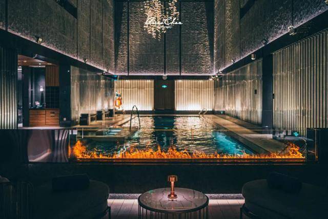 这一层的景观位都留给水疗中心和健身房,但室内恒温泳池并没有让人感到压抑,挑高近10层楼的设计让这里充满了空间感,颜值很高。