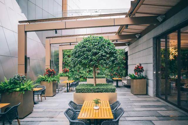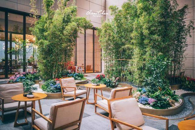 每间文华东方酒店都有一家文华饼房,深圳文华东方的文华饼房位于二层迎客大堂的一侧,竹林庭院是这里最有特色区域,「I Am Fan」的艺术装饰也在这里,也是酒店的必打卡点之一。