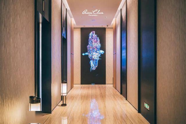 位于酒店2层大堂电梯间的虚拟数字艺术装置名为「无限」,设计灵感来源于深圳辽阔无垠的海岸线。