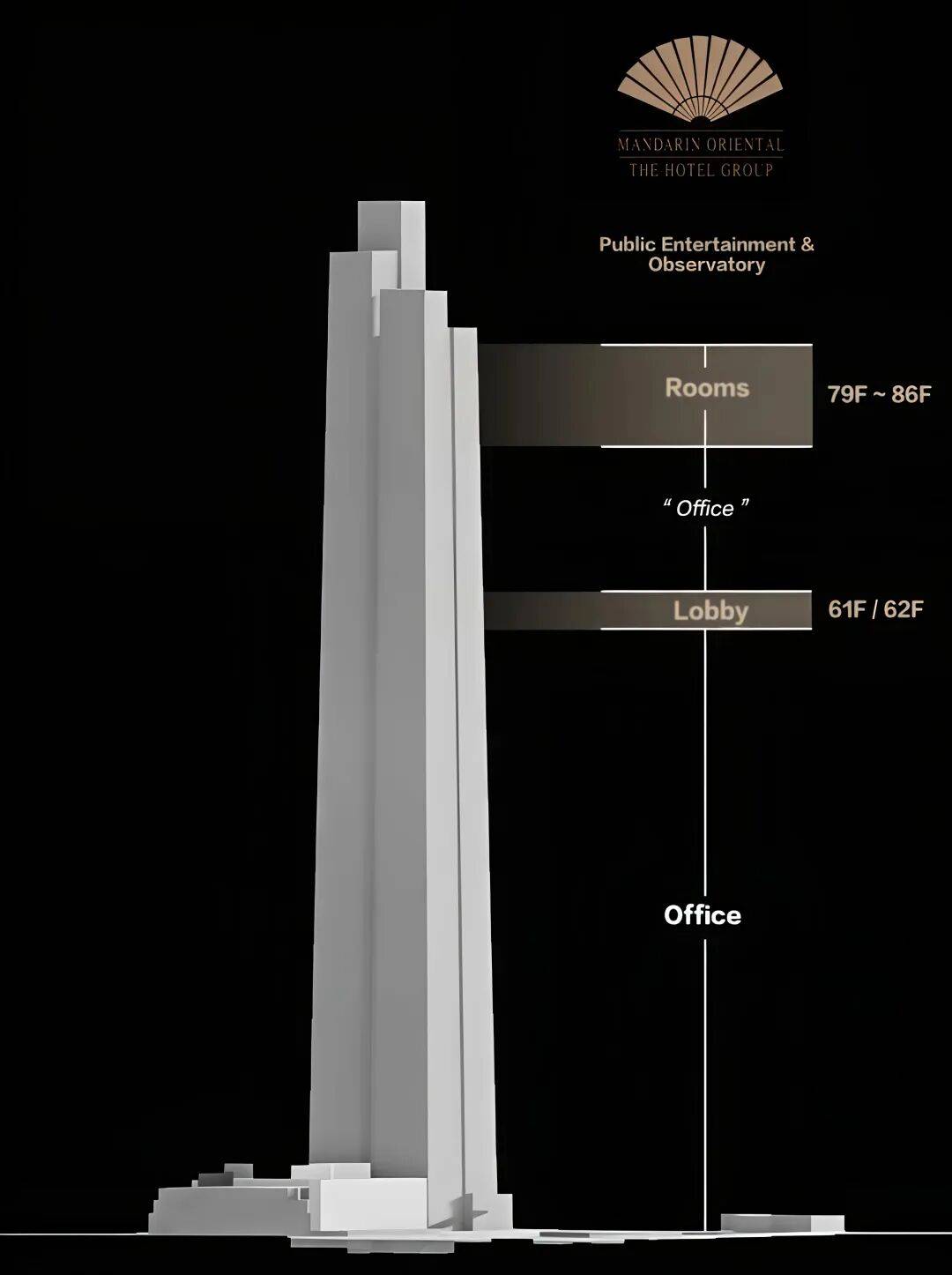 而如今,因开发商中海佳隆成都房地产开发有限公司同天府新区相关部门履约协议发生变更,申请对该项目业态进行全面优化:文华东方酒店从原规划的100米独立副楼,整体迁升至489米主塔的61/62层及79至86层,实现了从“地面”到“云端”的本质飞跃。