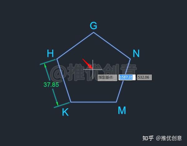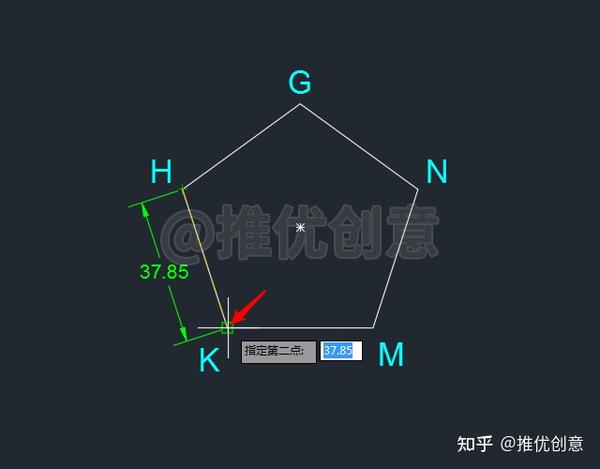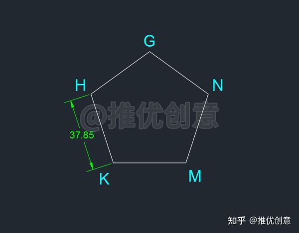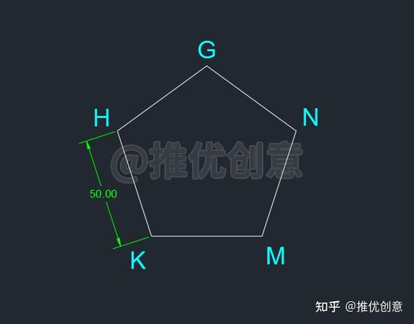 3.6、这样就绘制出了一个任意尺寸的正五边形GHKMN。