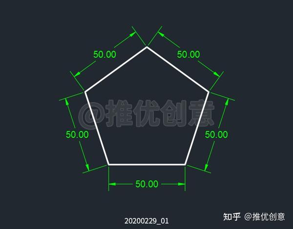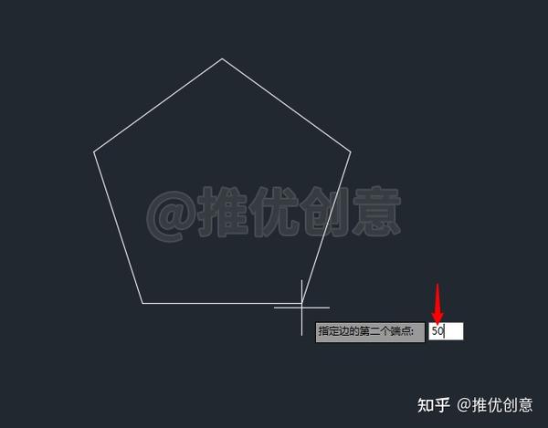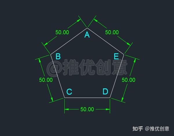 2.6、这样就通过指定边长方式绘制出了一个边长为50个单位的正五边形ABCDE。