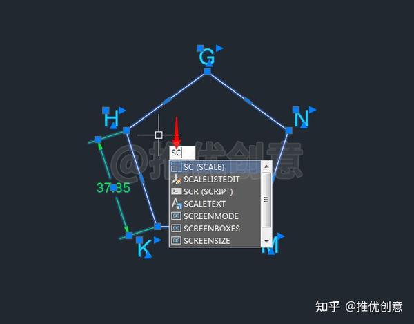 3.7、按快捷键“Ctrl+A”,选中所有对象,命令行输入“SC”后回车,启用“缩放”命令。