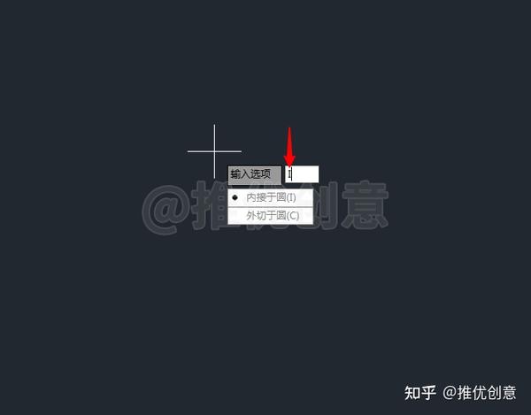3.4、命令行输入“I”后回车,选择内接于圆的方式绘制正多边形。