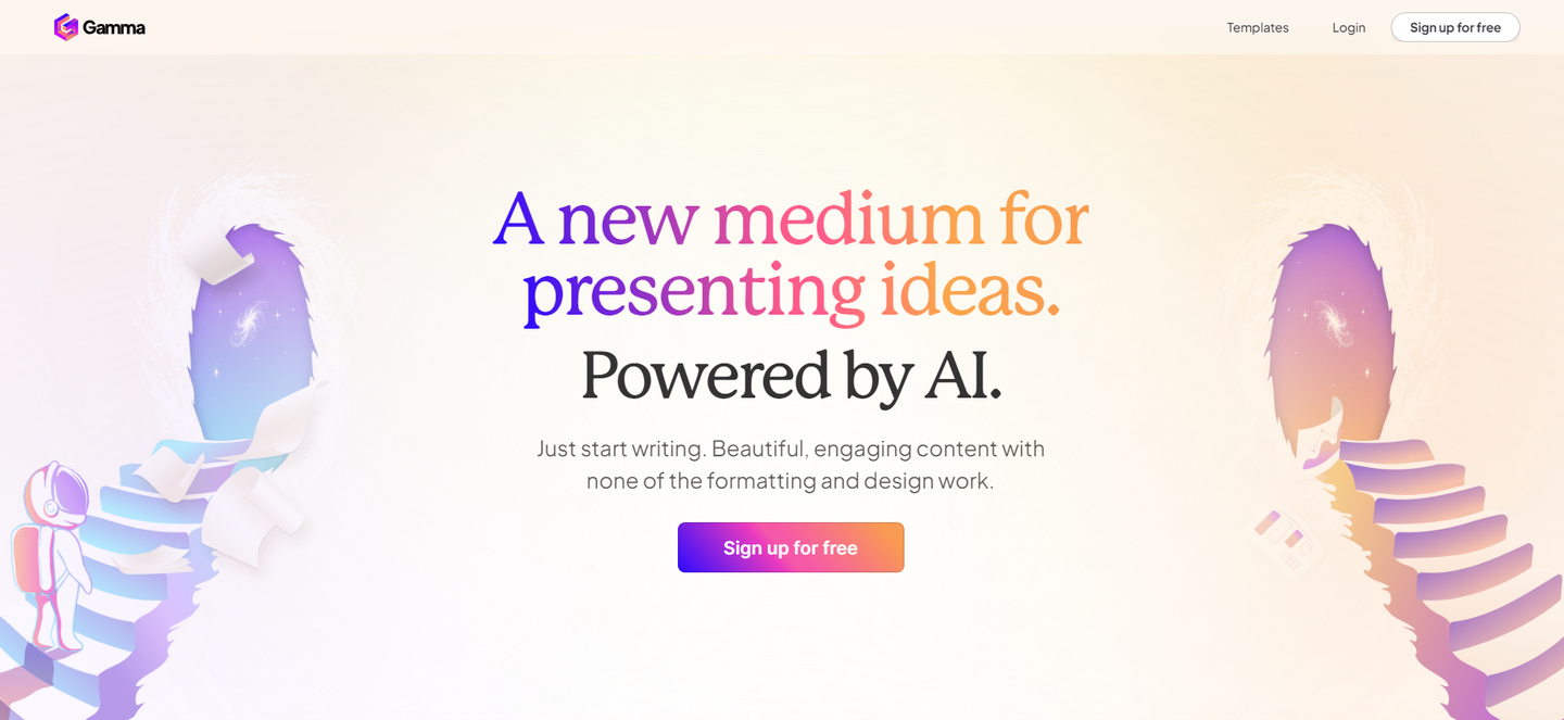 Gamma,是一款由AI驱动的演示想法的工具,你只要负责写,其他的交给Gamma,就能创造出美观、引入儒生的内容。