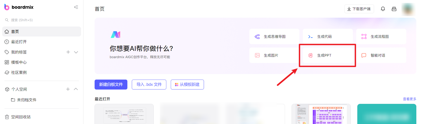 下面着重介绍 boardmix博思白板的AI生成PPT功能: