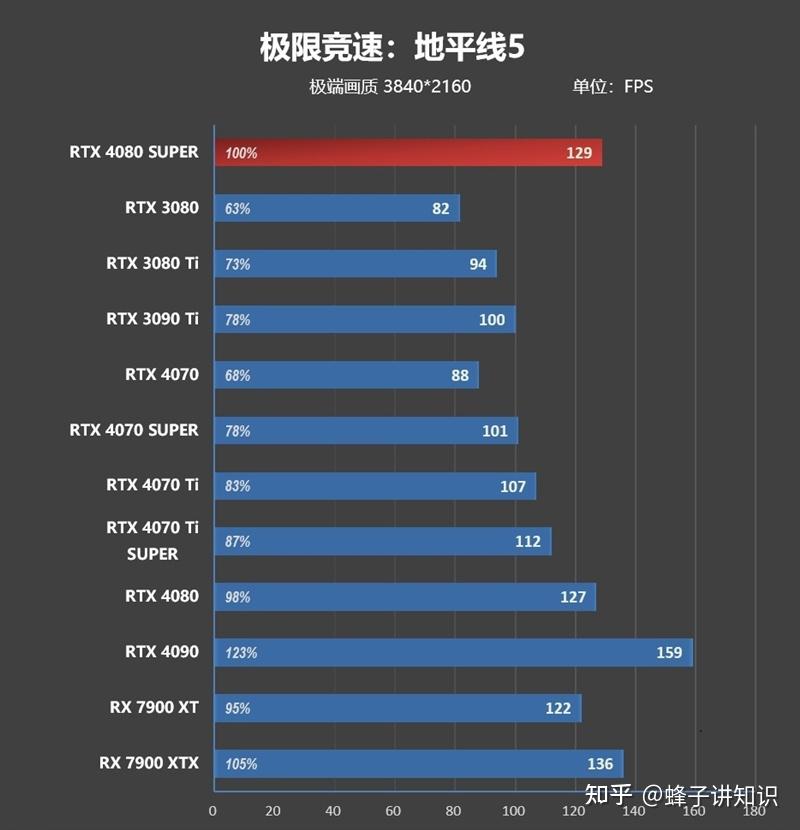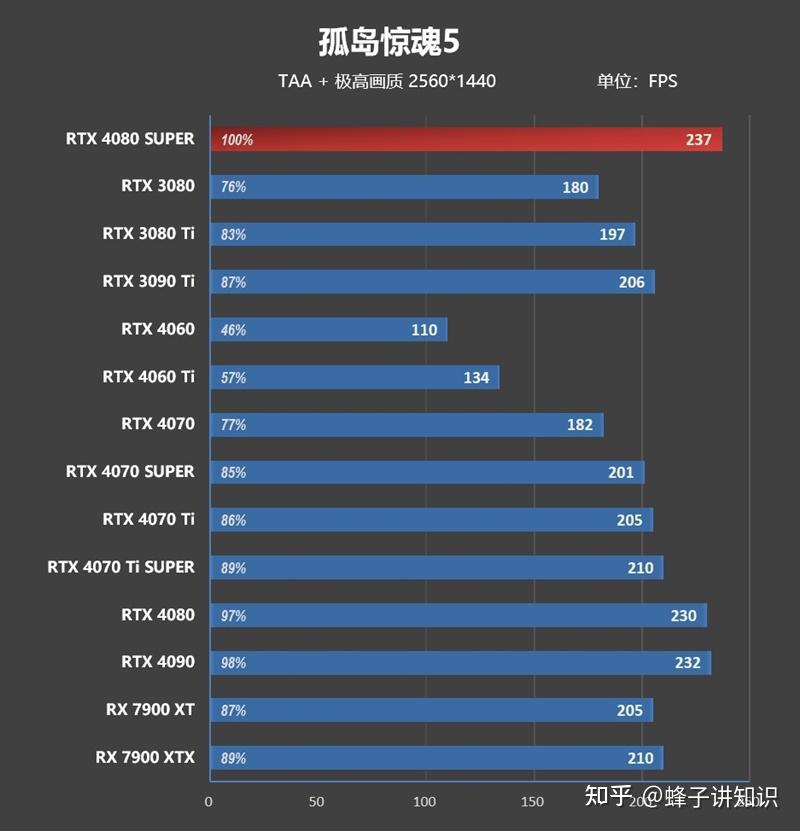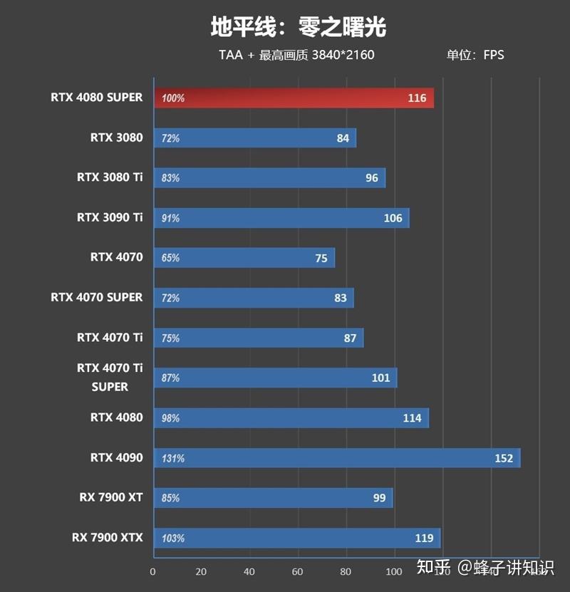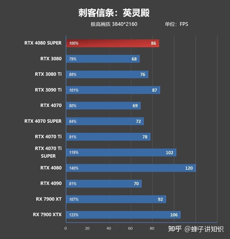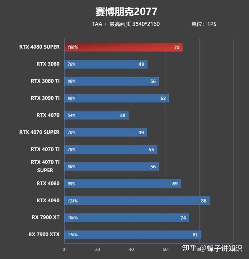 4K分辨率下,RTX 4080 SUPER依旧能够领先RTX 3090 Ti约18%的样子,比RTX 4080快了2%,比RTX 3080 Ti快了31%。