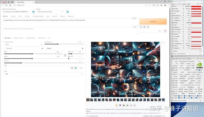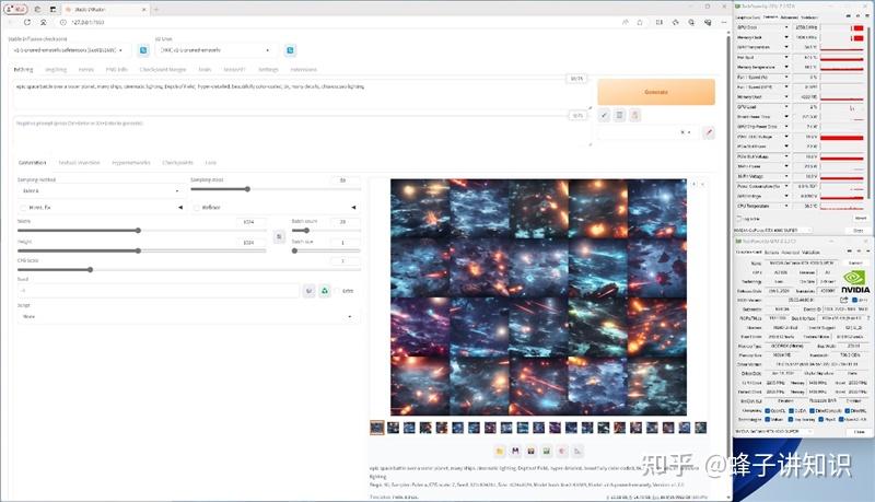 我们生成20张太空大战图像,分辨率1024*1024,使用PyTorch xFormers加速时,耗时8分钟。