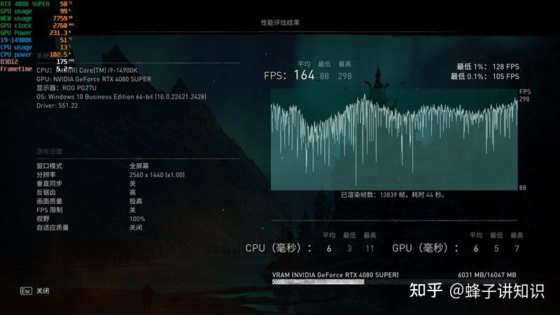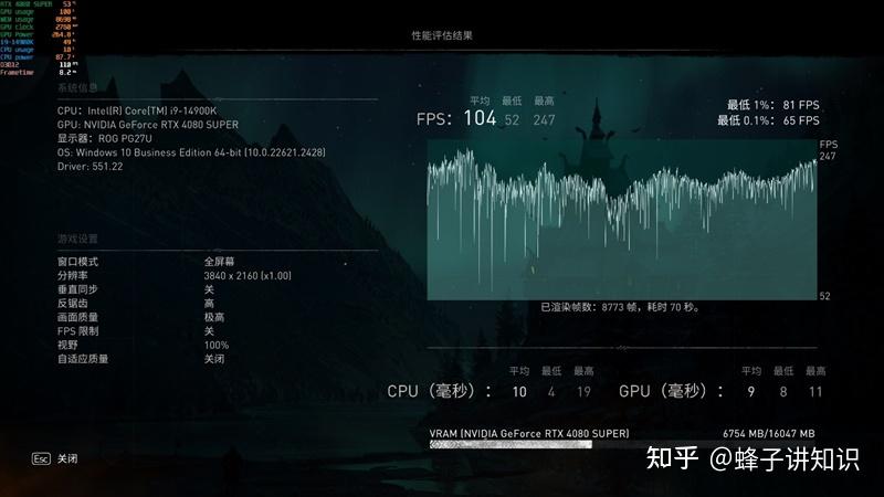 最高画质下,RTX 4080 SUPER帧率65FPS。