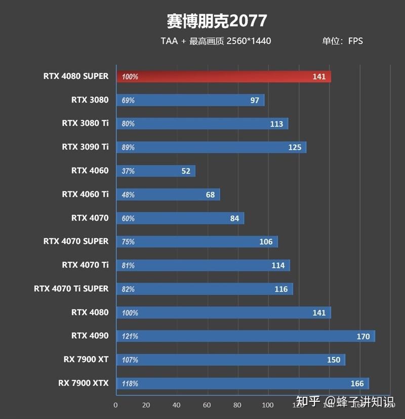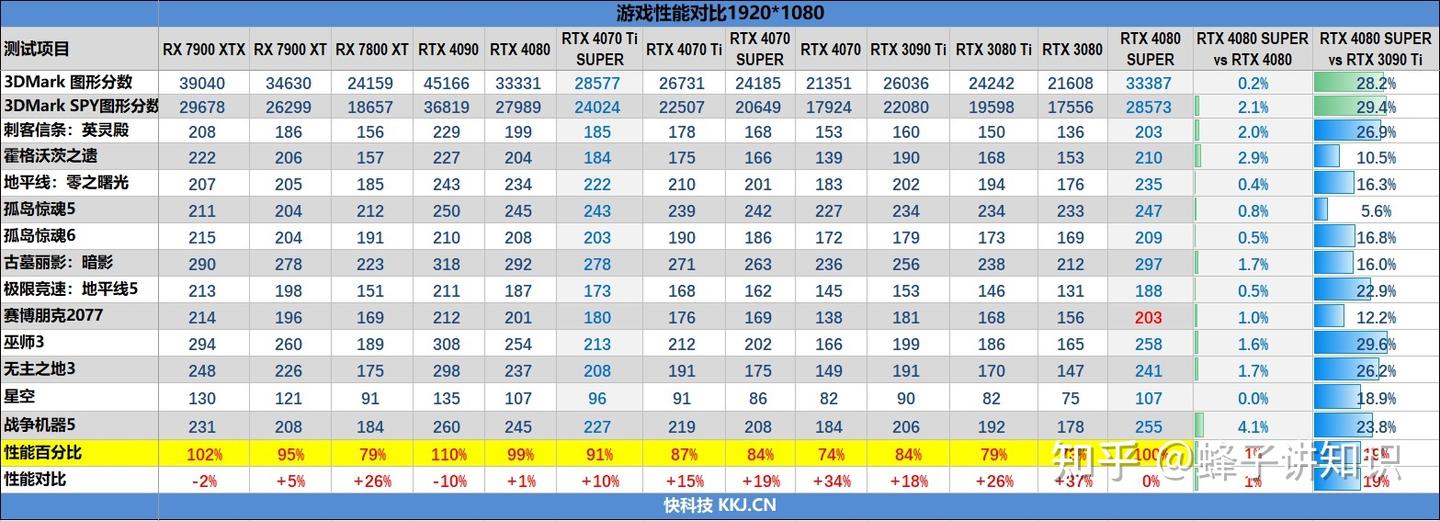 和RTX 4080相比,稍微领先2%,但是和RTX 3090 Ti比起来,领先幅度达到了22%。