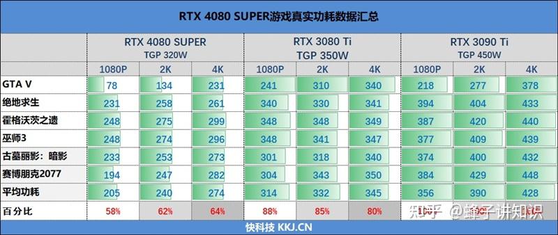 1080P分辨率下,RTX 4080 SUPER的功耗为231W,而RTX 3090 Ti则高达394W。