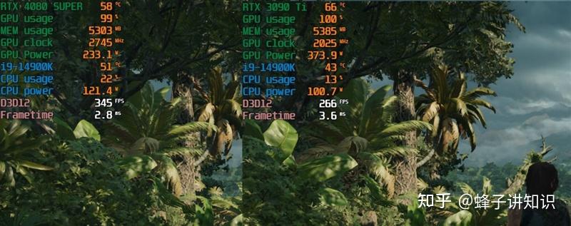 RTX 4080 SUPER的游戏功耗大约是RTX 3090 Ti的60%,考虑到它的游戏性能要强了20%左右,因此可以得知RTX 4080 SUPER的拥有RTX 3090 Ti两倍的能效比