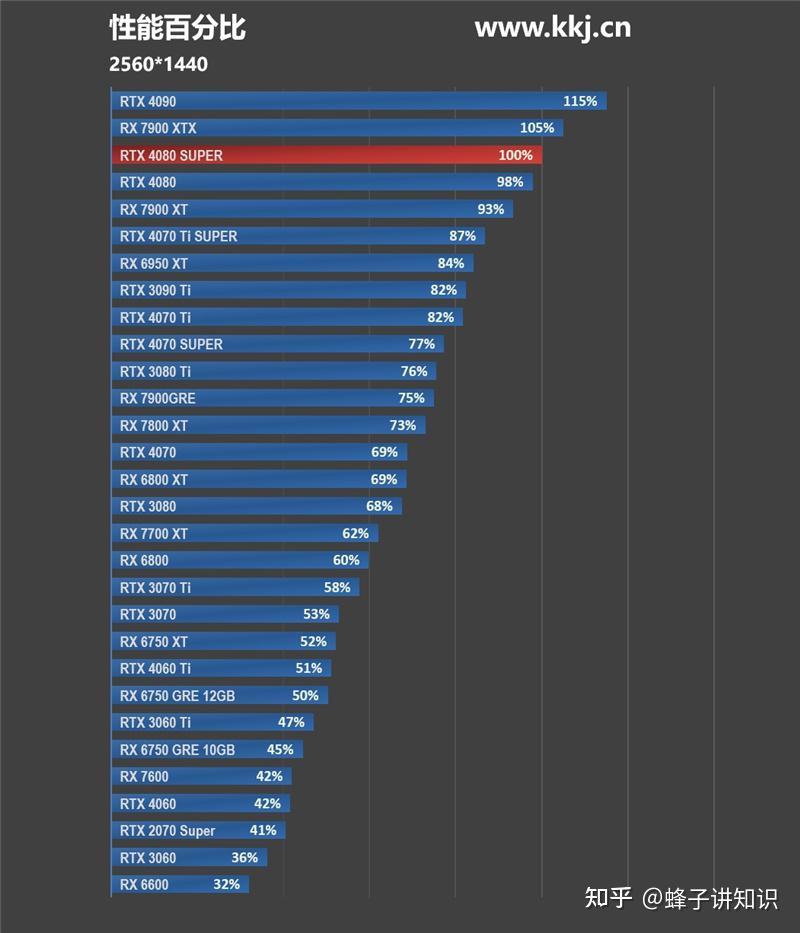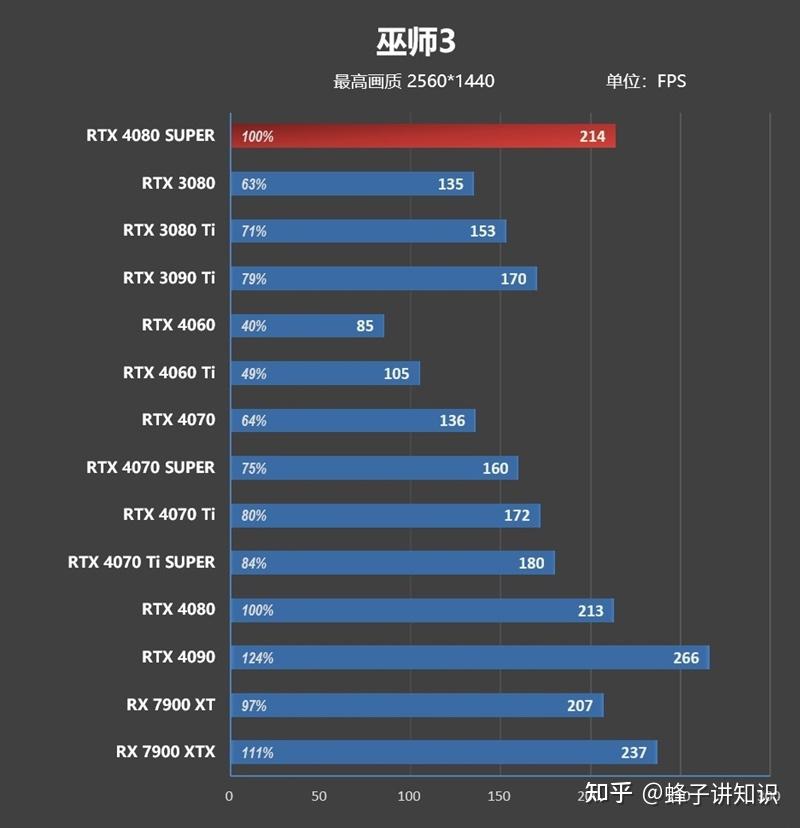 2K分辨率下,RTX 4080 SUPER相比RTX 3090 Ti领先优势扩大到了22%,比RTX 4080快了2%,比起RTX 3080 Ti则有32%的优势。