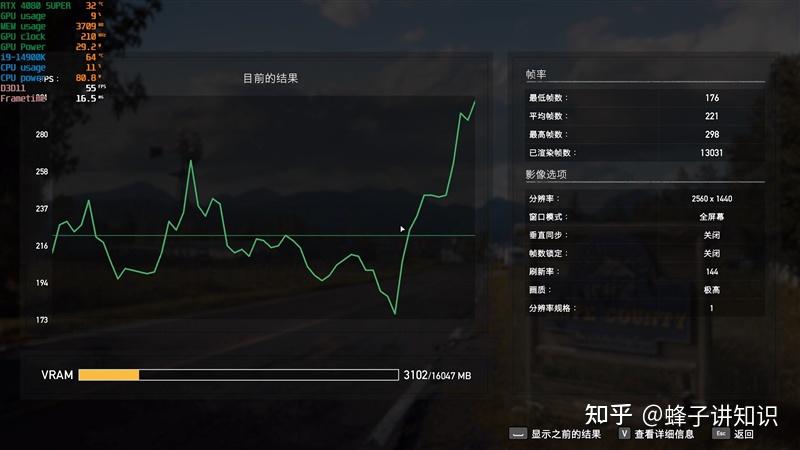2K分辨率下,RTX 4080 SUPER功耗是252W,运行频率2745MHz,温度60度。