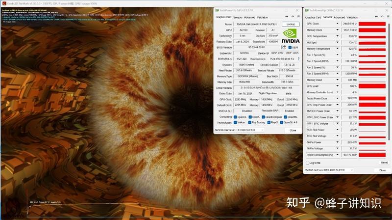 室温19度,使用Furmark烤机5分钟,GPU功耗稳定在320W,核心频率2220MHz,温度65度,风扇转速1550RPM。